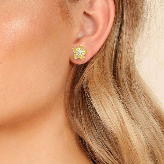 925 Sterling Silber 18K vergoldet, handgefertigte Kirschbluten Ohrringe