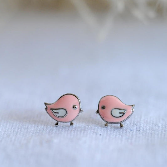 925 Sterling Silber Rosa Vogel-Ohrstecker für Mädchen