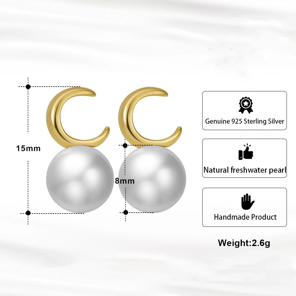 Made from high-quality 925 sterling silver and finished with a luxurious 14K gold plating, these stud earrings add a timeless and elegant touch to any outfit. The combination of moon and pearl design gives the earrings a subtle yet unique charm.