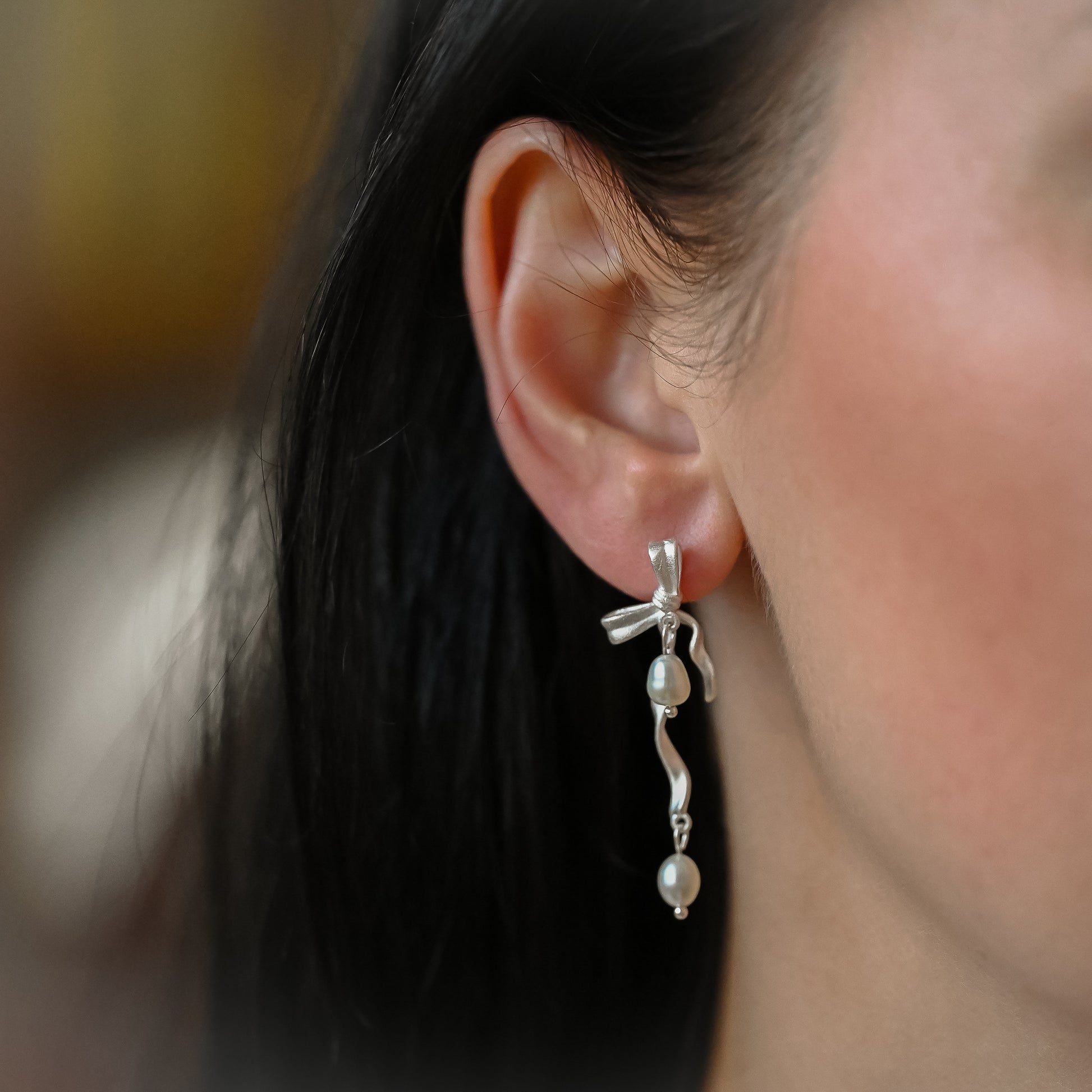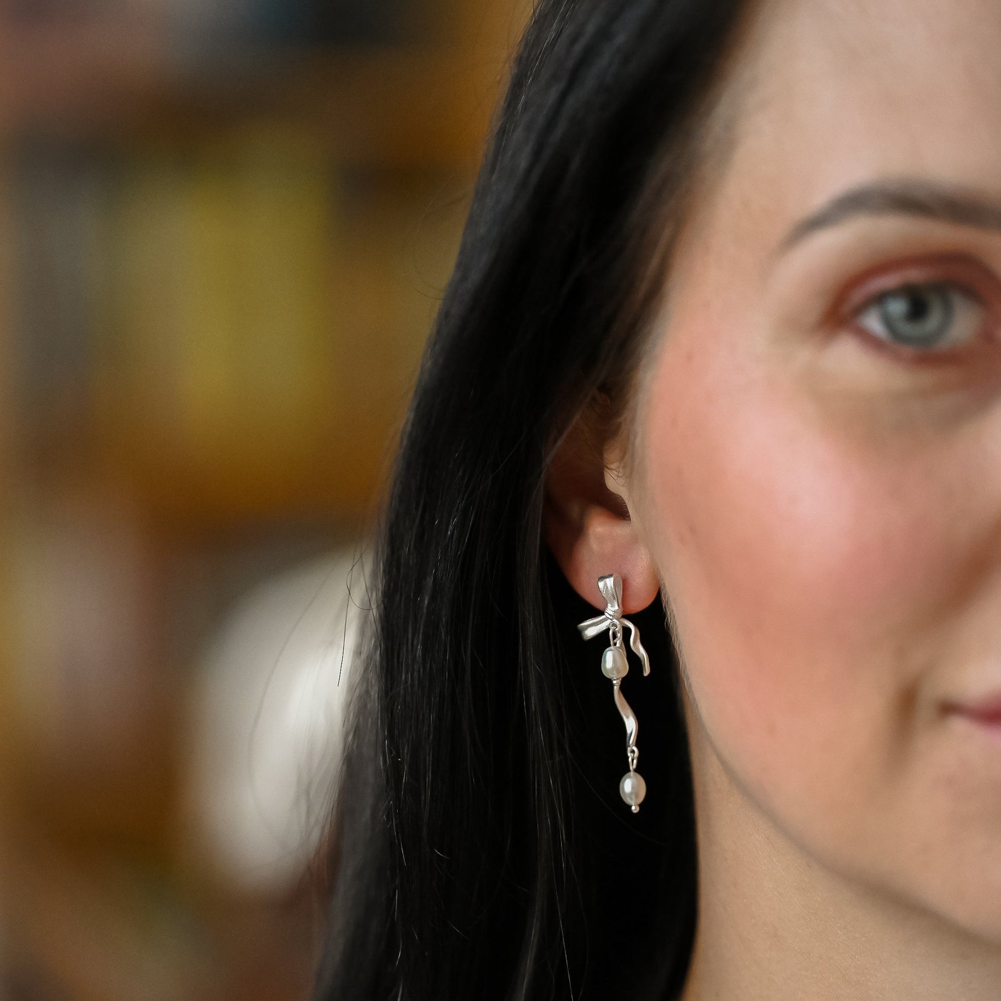 Zarte Hängeohrringe Schleife mit Süßwasserperlen, 925er Silber