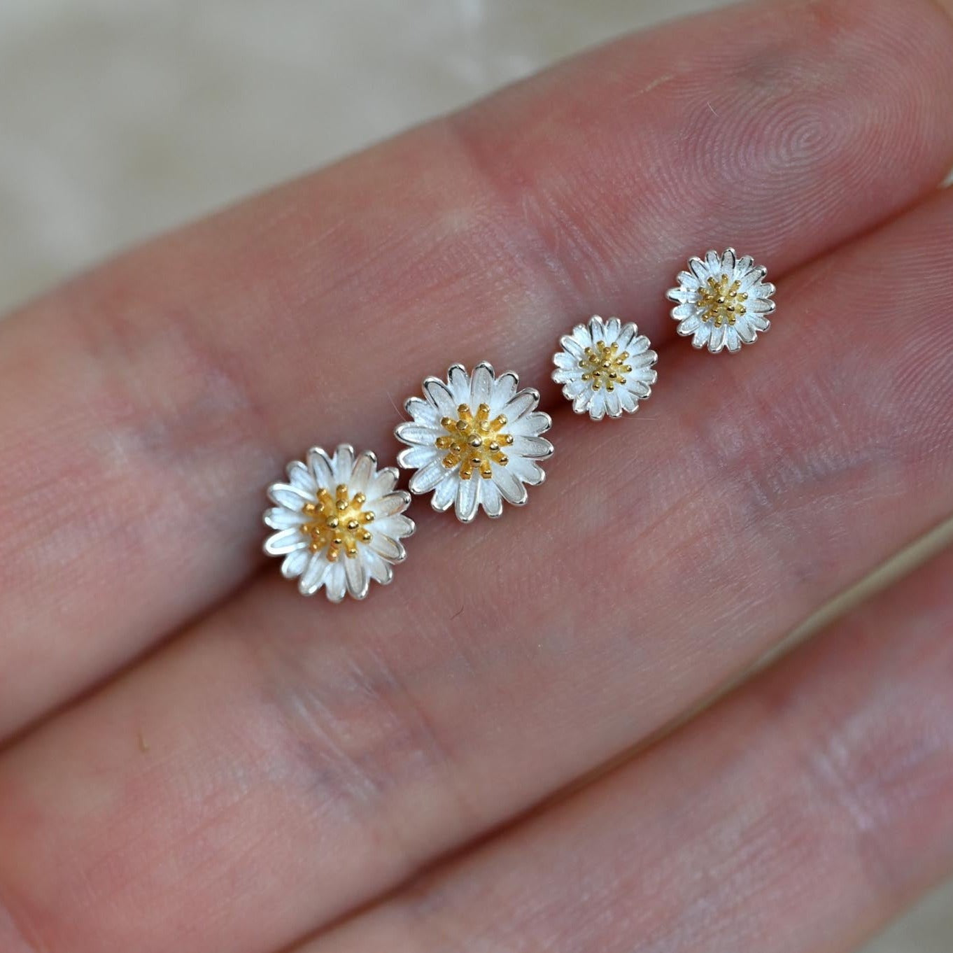 Gänseblümchen Ohrstecker, 925er Silber, 18K Gold