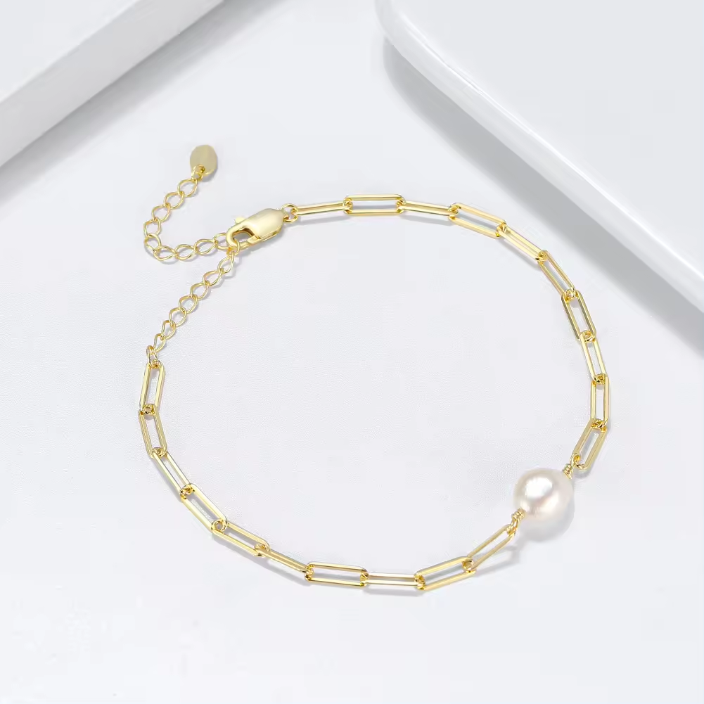 Gliederarmband mit Süßwasserperle 925er Silber, 14K Gold