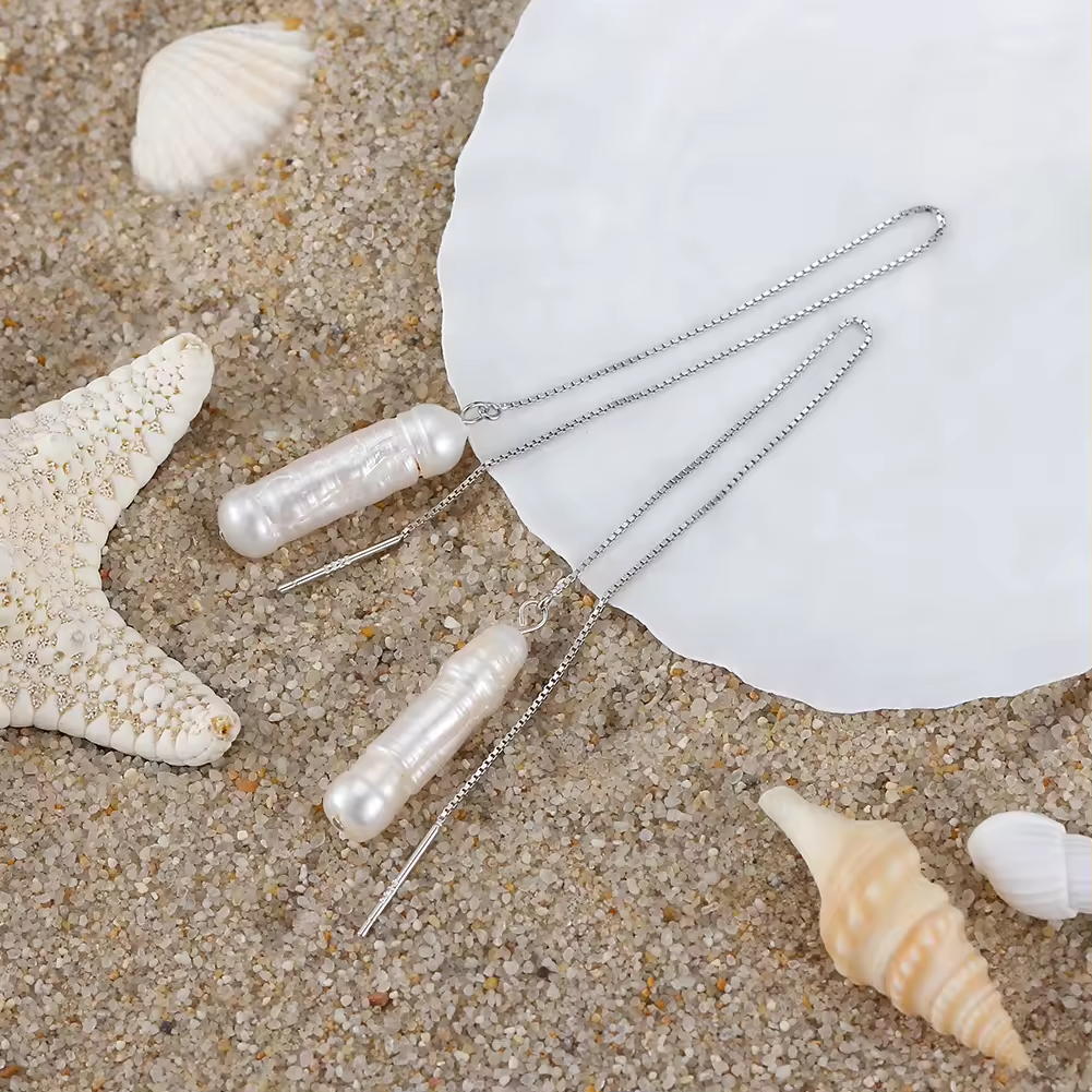 Handgefertigte Kettenohrringe: Einzigartige Eleganz mit Natürlichen Barockperlen Silber