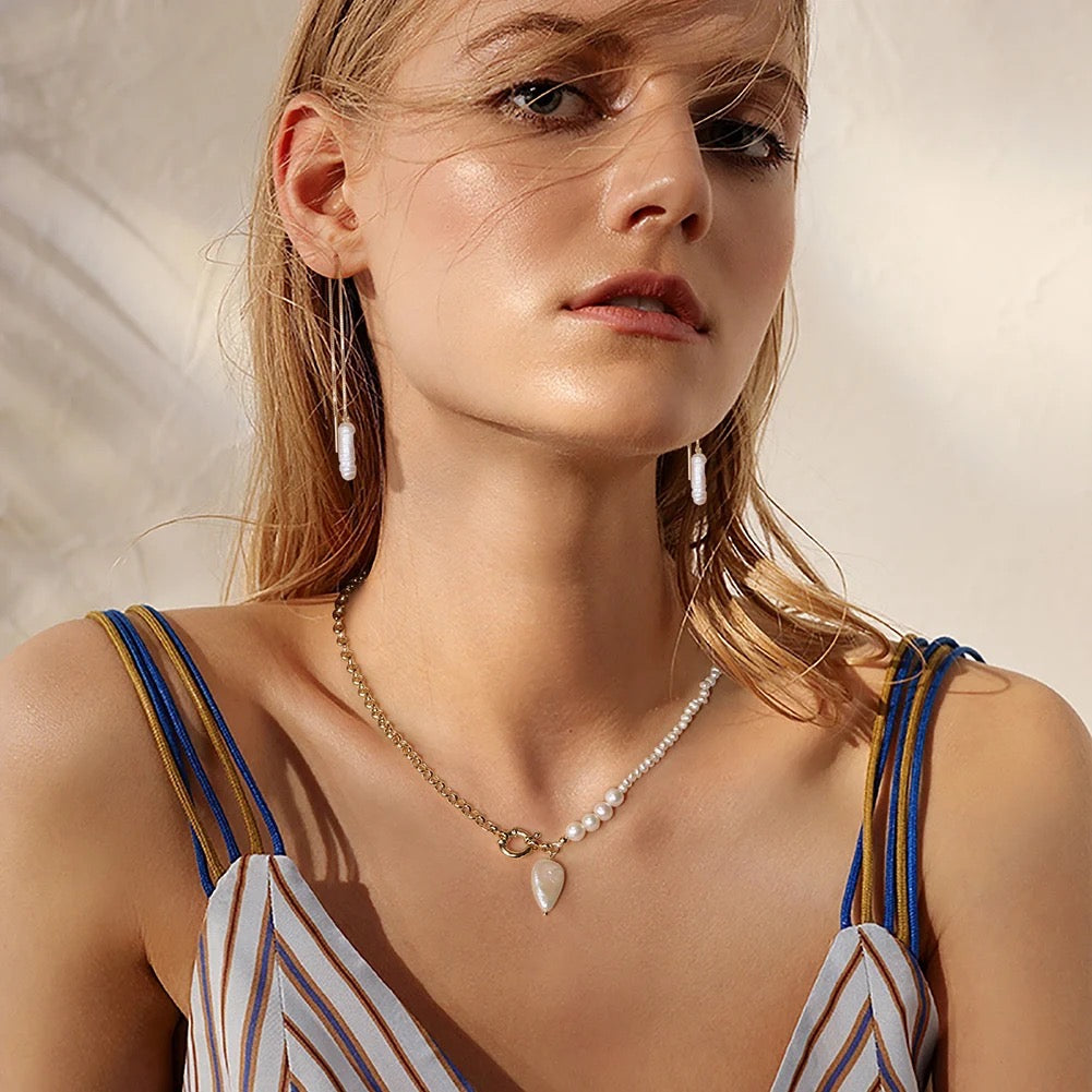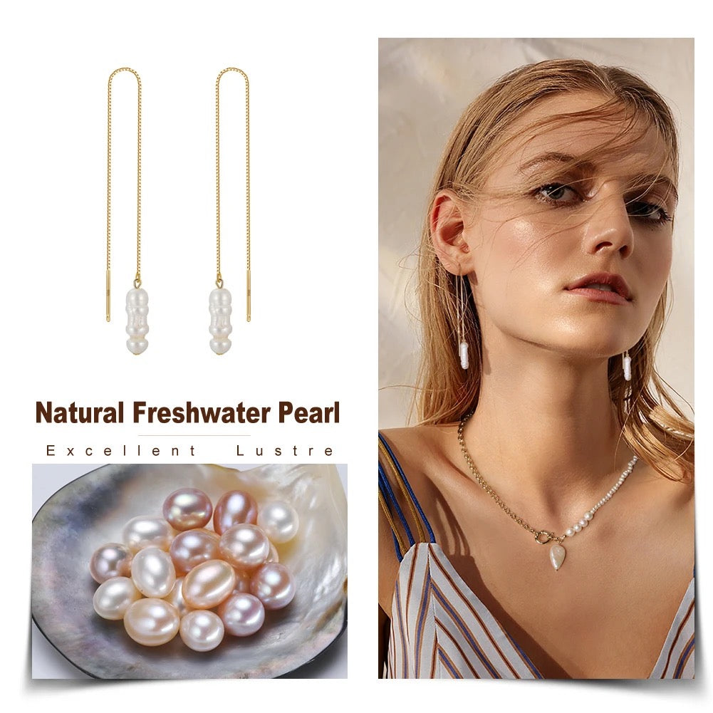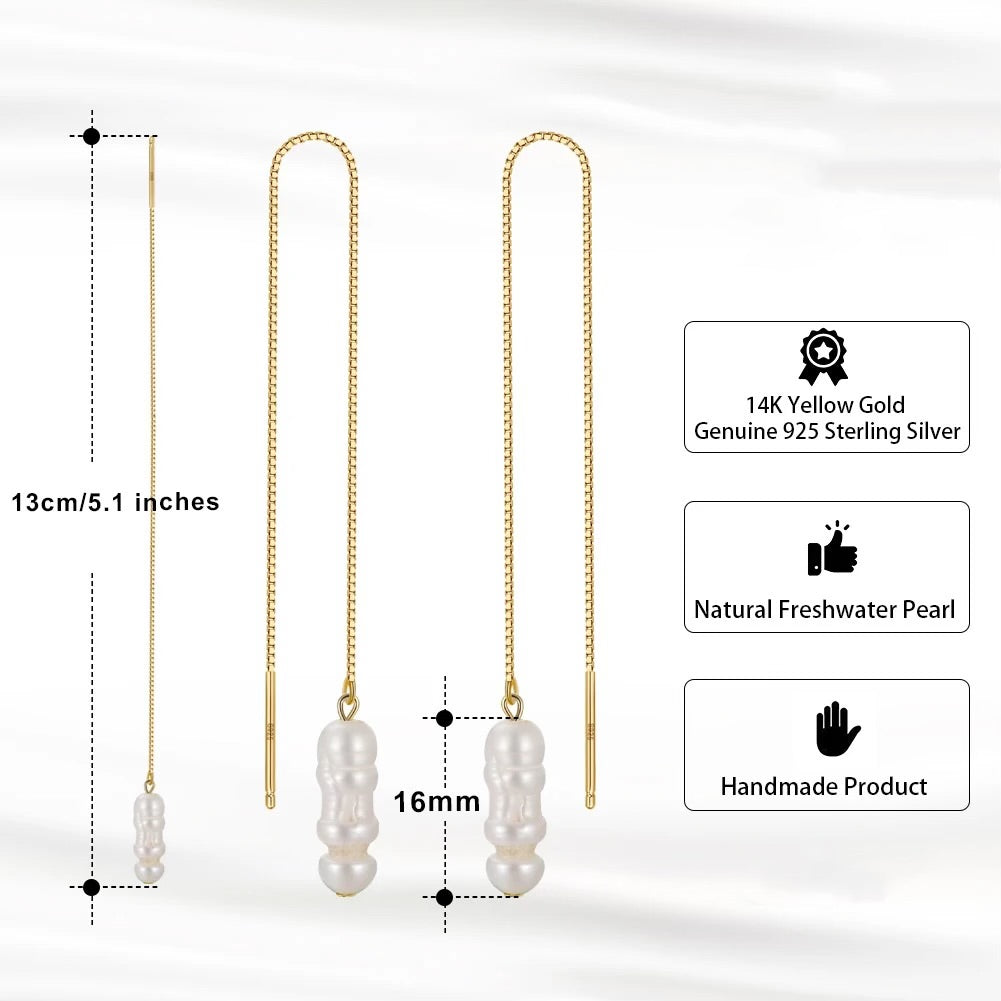 Entdecken Sie die zeitlose Eleganz unserer handgefertigten Kettenohrringe, die mit natürlichen Süßwasserperlen in Zahnstocherform verziert sind. Jedes Paar dieser exquisiten Ohrringe wird mit größter Sorgfalt gefertigt, entweder aus hochwertigem 925 Sterling Silber, das mit einer luxuriösen 14K Goldplattierung veredelt ist, oder in einer anderen Variante aus reinem 925 Sterling Silber.