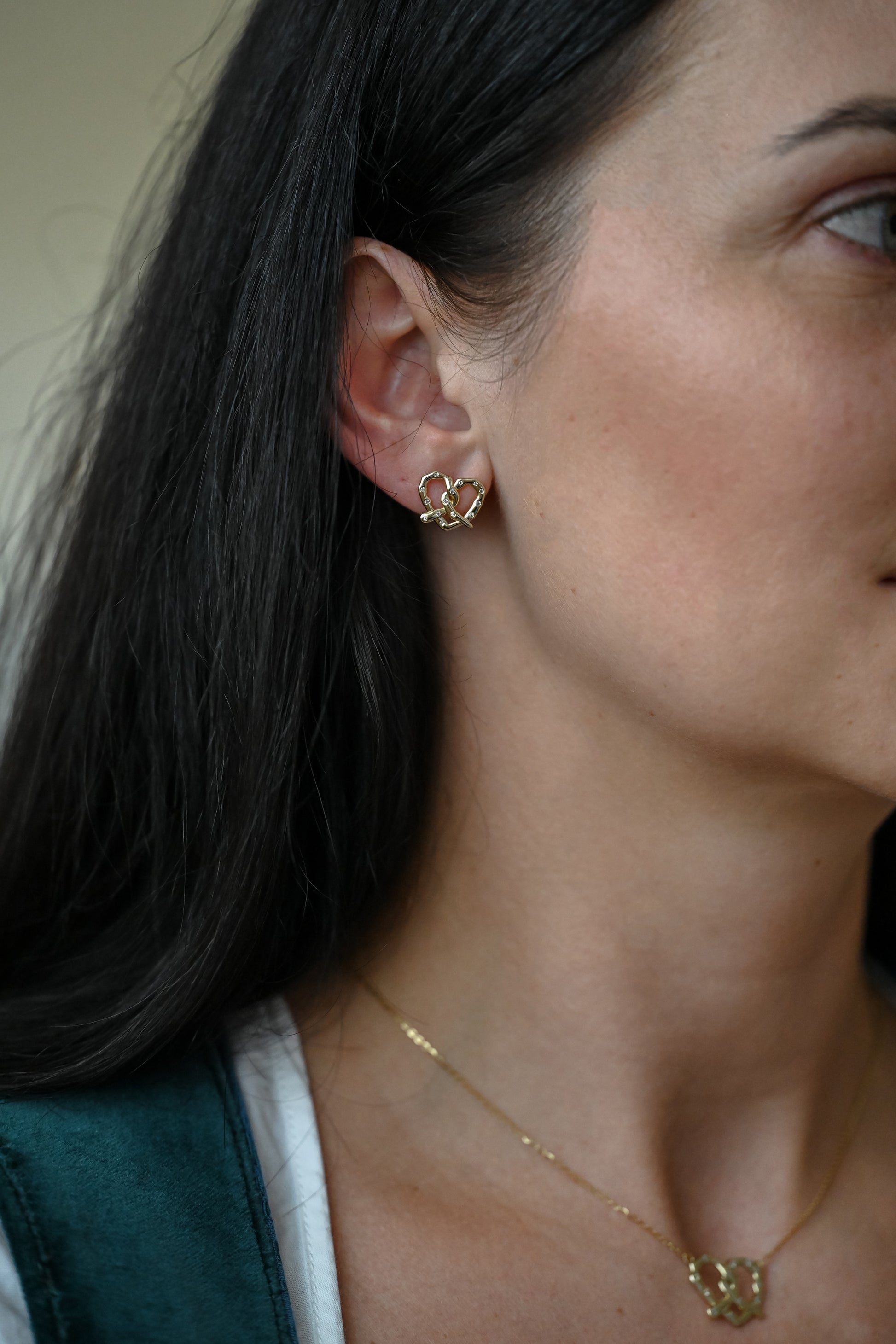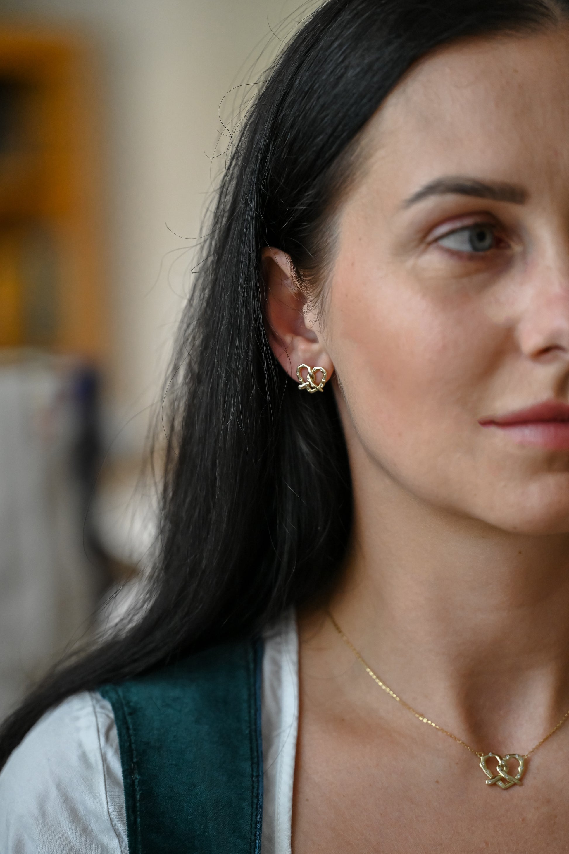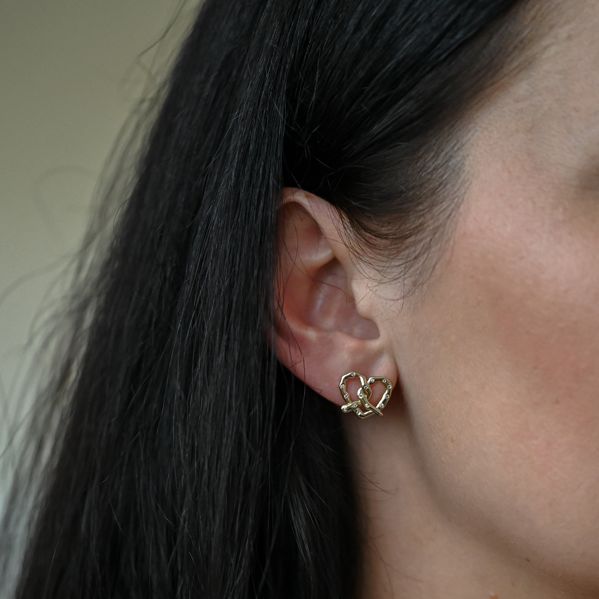Ohrstecker große Breze mit Zirkon, 925 Sterling Silber 14K Gold